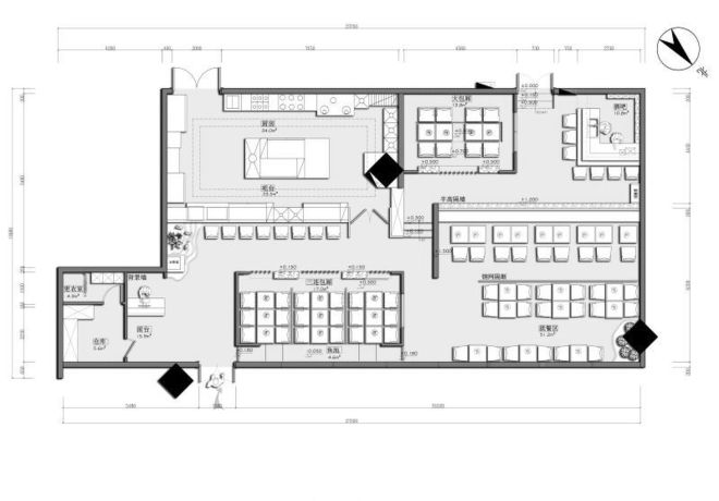 ▄原建筑結(jié)構(gòu)分析: 散座區(qū)的整體設(shè)計(jì)以木飾面和日式裝飾為主,色調(diào)溫暖,塑造了溫馨的就餐氛圍,體現(xiàn)了一個(gè)祥和安逸的生活狀態(tài),緊張的工作之后來此就餐體會(huì)到一種放松的感覺。
