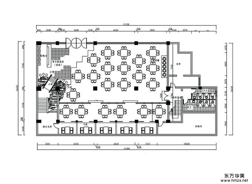 ▄設計需求: 設計師采用自然淳樸卻又不失典雅的設計手法,通過材質及色彩的搭配使用,給予顧客營造了雅致的就餐環(huán)境,雖然基本采用的是暗色調,卻沒有壓抑的感覺,反而給人以古樸、沉靜的舒適的優(yōu)雅感覺。