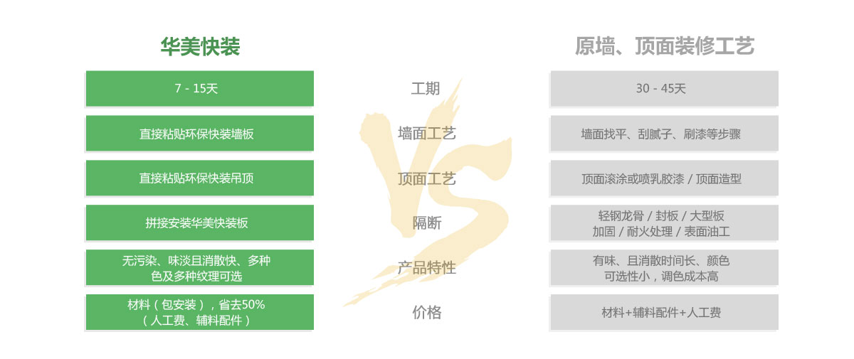工期短 施工過程統(tǒng)一安排,從毛坯到入住只需7-15天標(biāo)準(zhǔn)工期;