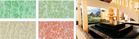 [華美藝術(shù)隔斷] : 通過將建筑、尾礦等余料回收,通過自主發(fā)明的全新第五代水性環(huán)氧互穿技術(shù)制造而成的無污染、可私人定制的仿石產(chǎn)品。產(chǎn)品實現(xiàn)了綠色循環(huán)、資源再生,可代替陶瓷、天然大理石、玻璃、木材等相關(guān)建筑裝飾、裝修材料。